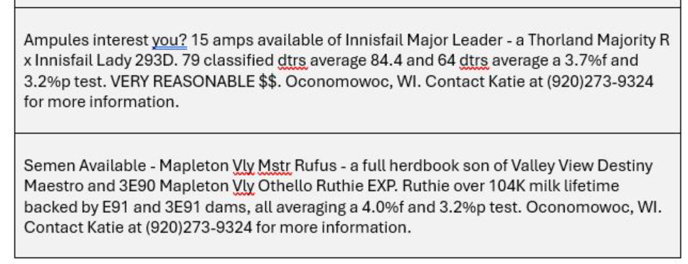 Advertise your farm, animals for sale, semen, etc.